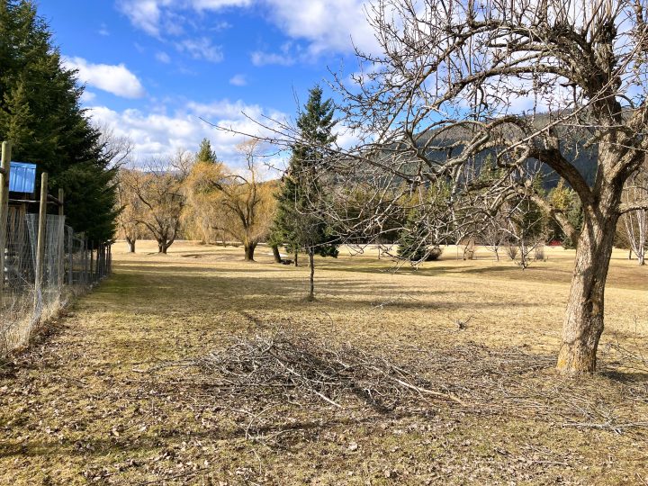 One acre of gently sloped land is available at the edge of Creston, BC in the rural neighbourhood of Canyon. The available land is a gentle, western-facing slope with excellent sun exposure that has been regularly cut for hay over the past several years. The soil is silty clay and a small spring runs through the edge of the lower pasture.