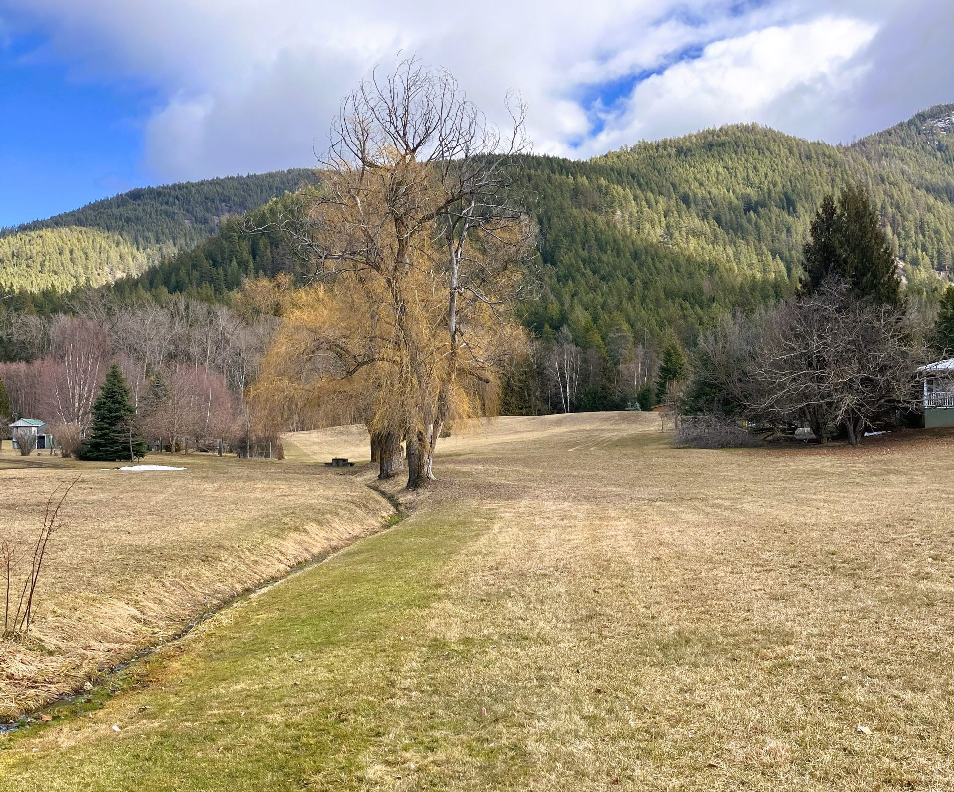 One acre of gently sloped land is available at the edge of Creston, BC in the rural neighbourhood of Canyon. The available land is a gentle, western-facing slope with excellent sun exposure that has been regularly cut for hay over the past several years. The soil is silty clay and a small spring runs through the edge of the lower pasture.