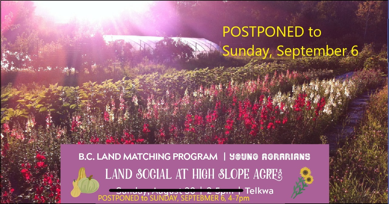 You’re invited to a socially-distanced Land Social at High Slope Acres, a flower and vegetable farm in Telkwa, B.C! If you’re curious about what land matching and sharing is all about, join us for the event.