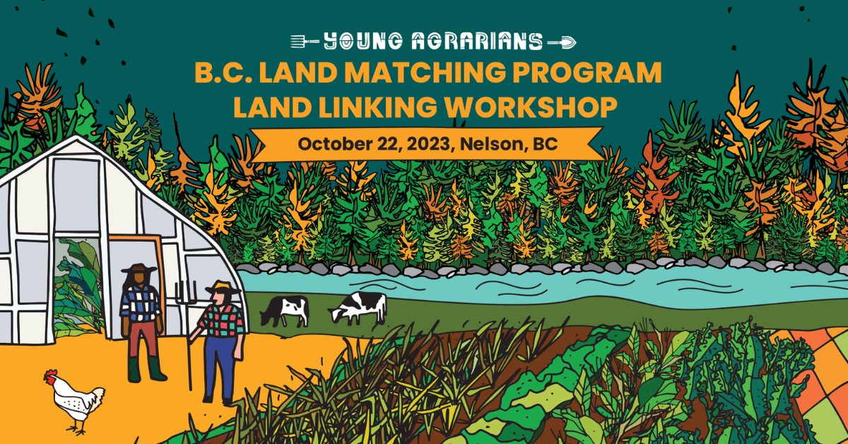 Questions about this event, or about the B.C. Land Matching Program? Reach out to our BCLMP Coordinator, Kat, at bclmp@youngagrarians.org.