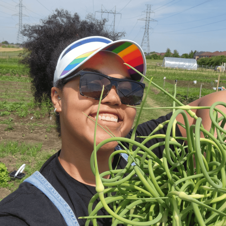 Claire Perttula (she/her) started farming in 2017 and worked on organic vegetable and meat farms in the Kawartha Lakes region of Ontario for several years. Working with cows, chickens, pigs, ducks, and horses, running market boots and helping with CSA drop-offs, Claire really found a love for farming. Currently, she manages a 2-acre community farm in Scarborough, Ontario and coordinates a staff team working on agriculture training programs and food justice projects in the neighbourhood. Claire is also passionate about food policy and has a masters degree in public policy, specializing in economic and environmental policy, and is a PhD student at York University researching farmer-led policy and planning frameworks around the farm succession crisis.
