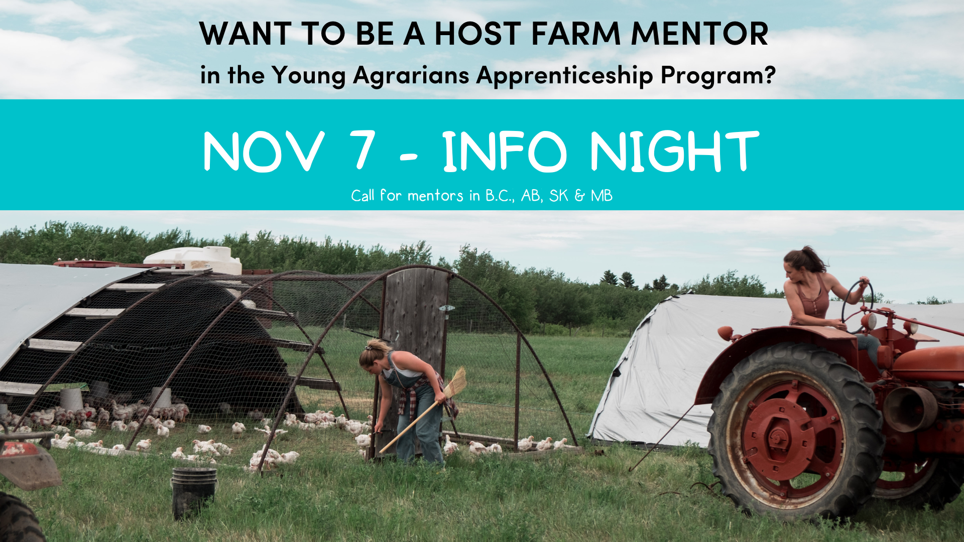Join us on November 7 for an info session to learn more about what it’s like to work with Young Agrarians to host an apprenticeship on your farm.