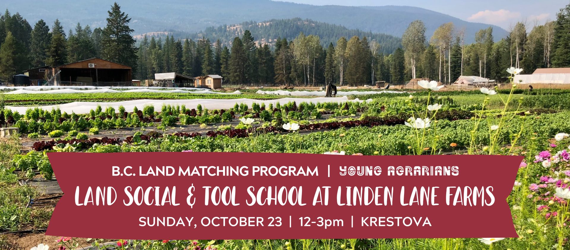 You’re invited to an outdoor Land Social and Tool School at Linden Lane Farms in Krestova (near Nelson). Linden Lane Farms operates on leased family land, as well as two other properties in the area, with agreements supported through the BC Land Matching Program. The thriving organic farm serves retail, Farmers Markets and consumers directly in the area through their CSA and on farm sales and also hosts one of three Kootenay Local Agricultural Society tool libraries.