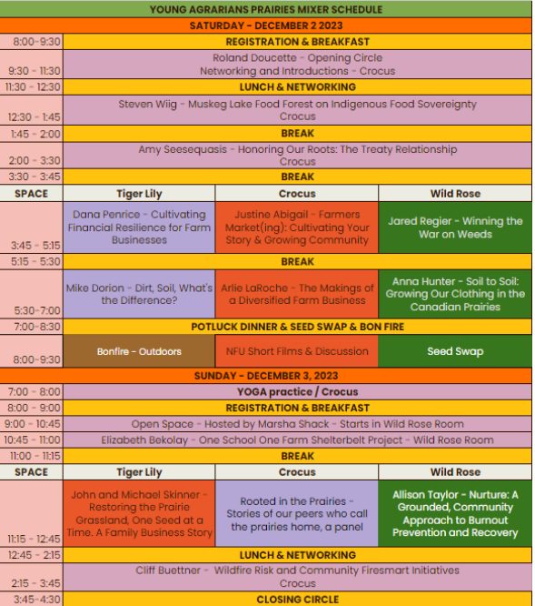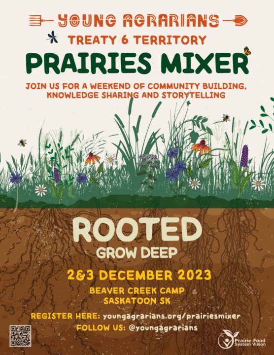 In the spirit of YA Mixers, this weekend is designed as a networking event and in particular, to build a strong and active community of new farmers in the prairies. It is a great opportunity to create transformative relationships among each other rooted in the common desire to steward the land by learning from one another and from Indigenous leaders in the spirit of reconciliation and relationship building. The mixer is open to everyone – whether you are 3 or 83, we love agrarians of all ages.