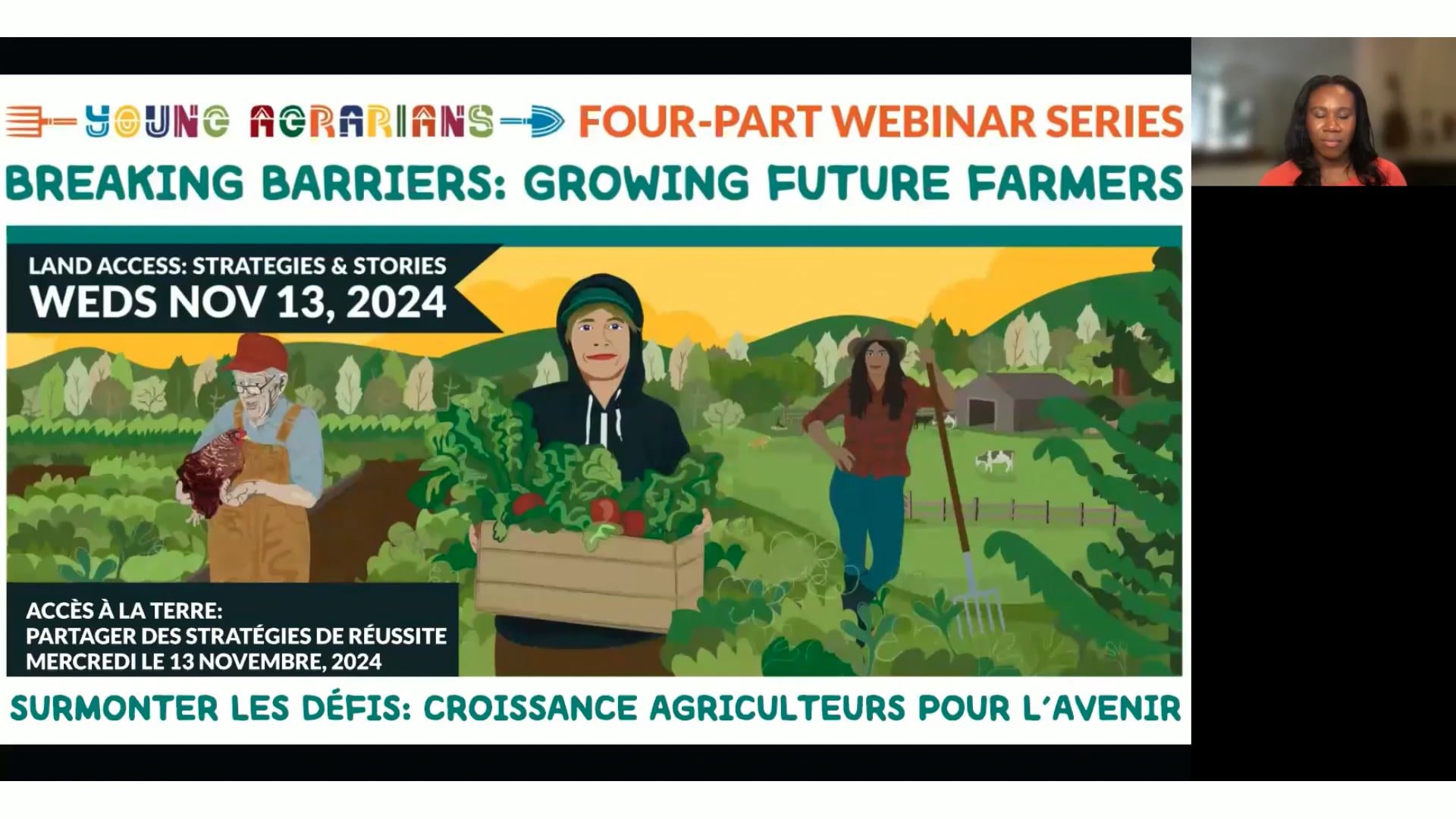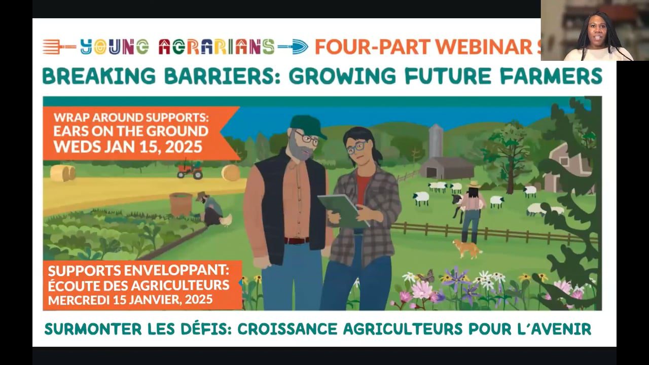 The “Breaking Barriers Growing Future Farmers” four-part Webinar Series featured stories, strategies, resources, programs, and funding initiatives to navigate new farmer barriers, foster connection, and inform new approaches to better support new and young farmers across the country. Each session featured dynamic speakers discussing innovative solutions to build farmer and farm organization capacity to identify solutions and action that will fill gaps in the new entrant ecosystem, and drive future policy change in Canada.