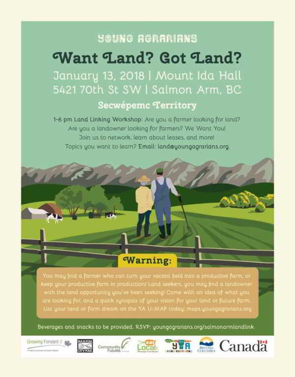 Land Linking workshop hosted by Young Agrarians in partnership with the Shuswap Food Action Co-op