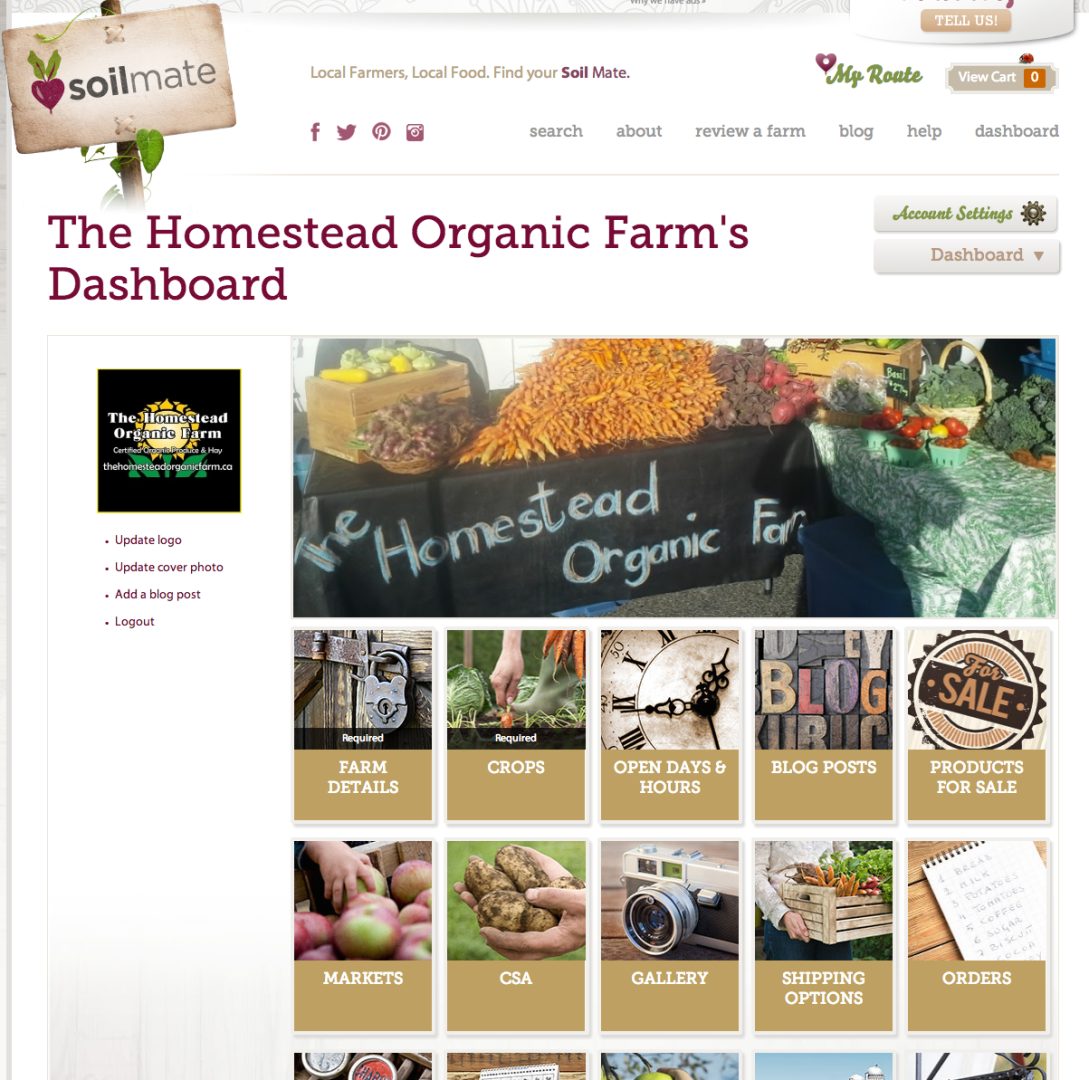 Soil Mate is an online platform for connecting eaters with their local growers / raisers / producers. In that sense it is similar to the MANY local directories out there, but where it is different is that it goes way beyond a listing and works on many different levels, for both farms and consumers. It allows visitors to see who grows / raises / produces what within a 100mi/160km radius of their search location. They can see how you do it, what you sell, when it’s available and where and how they can buy it. You can even sell your products through the site (if you want to) and they can also build trip itineraries too (add farms, markets and wineries and build car, walking or bicycling trips).