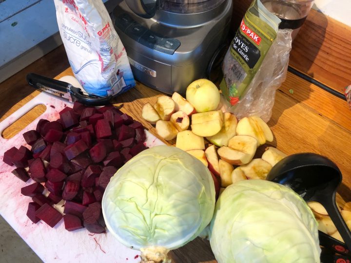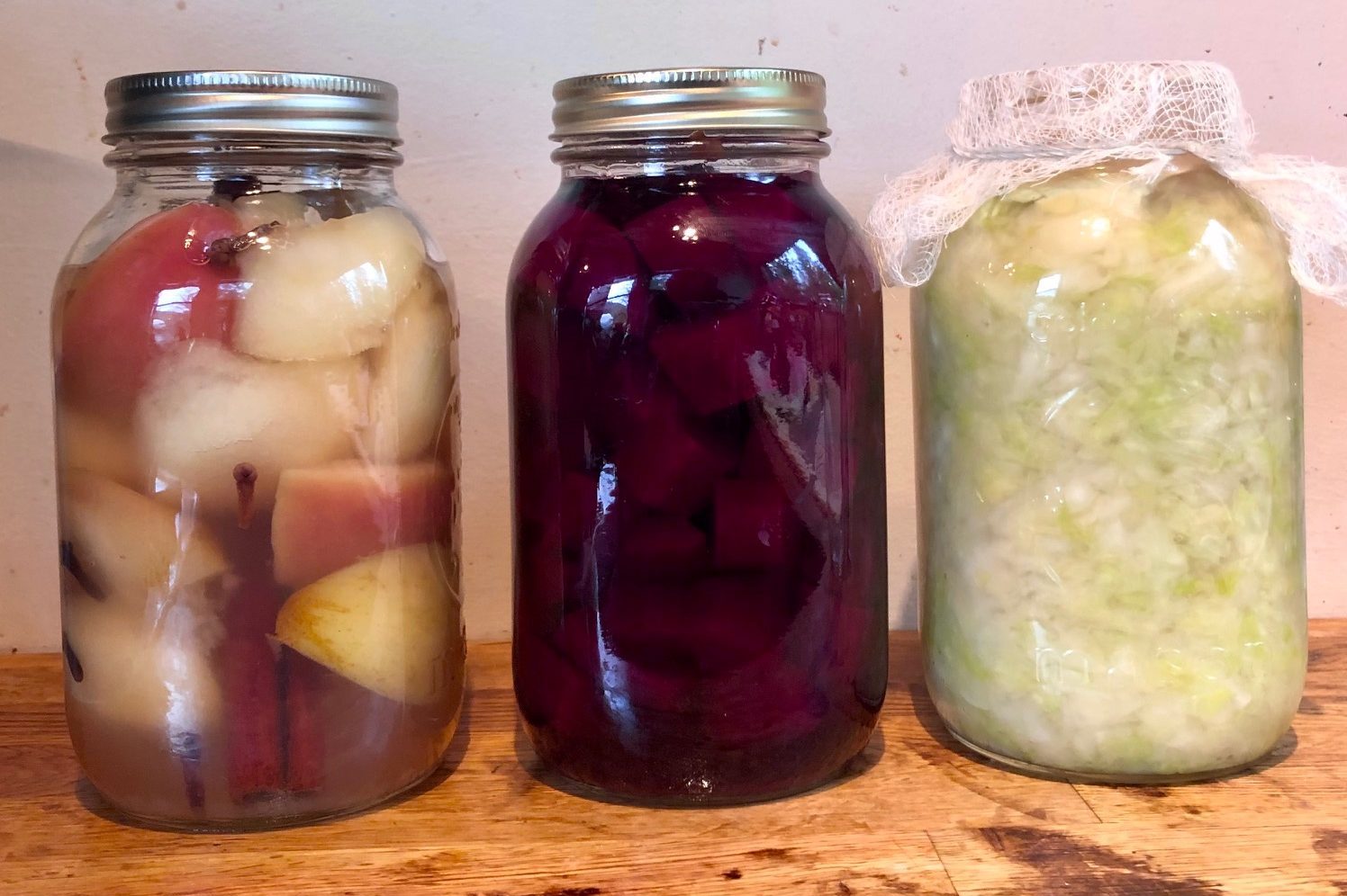 The goal of the workshops was to provide hands-on skills to turn farm/garden produce into value-added products, learning three different ways to preserve the harvest, with tips for both the home kitchen and creating value-added products. The afternoon online event featured three back-to-back sessions on Zoom where we learned, watched, engaged, asked questions and made our own canned spiced pears and apples, canned pickled beets and sauerkraut from the comfort of our own kitchens!