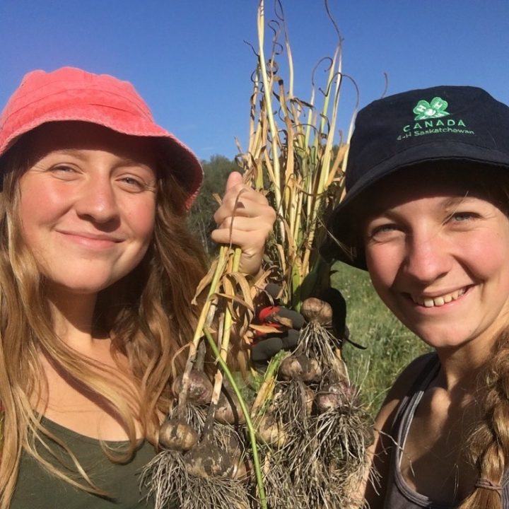 (Jeff’s daughter, Iso and Freya holding garlic from the harvest)