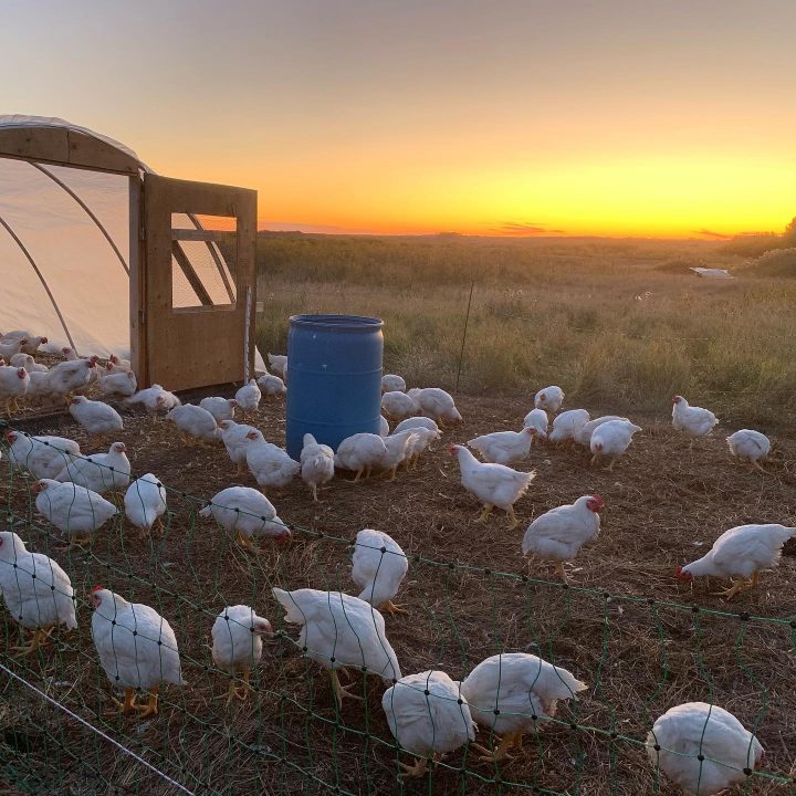 Peregrine farm currently raises 4000 chickens for meat, grows an acre market garden, tends 16 honey bee hives, manages a neighbors cattle in their pasture, and this year will be integrating a handful of pigs.