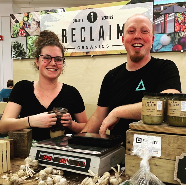 Reclaim Organics is a multi-enterprised certified organic market garden. We grow microgreens year round indoors, cut flowers and vegetables seasonally, and process seasonal product into preserves and pickles. Ryan and Brittany began their farm 8 years ago in Edmonton on vacant land throughout the Whyte Avenue area. Four years ago they returned to Ryan’s family farm 1 mile from Pigeon Lake and changed how it operated from conventional animal and grain to organic market garden. They sell their product through 4 marketing streams, CSA box, wholesale to retailers, wholesale direct to restaurants and farmers markets.