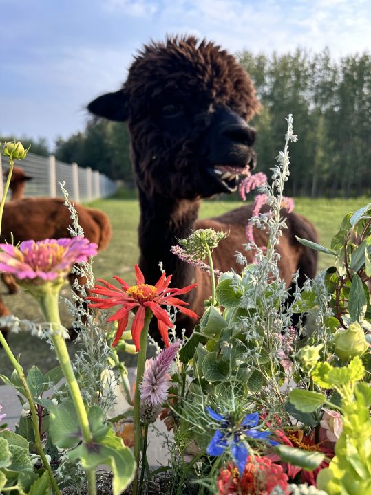 wholesale cut flowers to local florists but quickly found that the demand for that was limited. What wasn’t limited was the public’s interest in experiencing a cut flower farm! By August of 2021 Blooms on 7 was offering a u-pick and workshops and had moved from a wholesale to retail model. Further farm revelations and refinements were made in 2023, when Blooms on 7 was mentored by Farmer Tam of Prairie Gardens in the Young Agrarians Business Mentorship Network. You can read about their experiences in that program HERE!Today, Blooms on 7 is the only flower farm in Western Canada to grow over 200 varieties of cut flowers and offer small-group alpaca experiences!