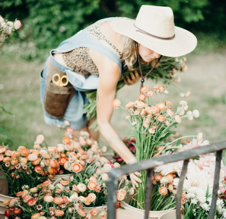 There’s so much knowledge available these days and you can find me in my prop house starting seeds or out in the fields weeding and endlessly listening to flower farming podcasts, soaking up all the tips I can. But nothing has been as valuable as just getting to ask my mentor and other flower farmers questions. I’m so grateful to be part of a connected network of talented flower farmers who have been generous with their knowledge. My mentor through the Young Agrarians mentorship program is Kailli Pigot, of Dancing Dandelion Farms, and I was trained in farming and arranging for many years under Claire Jutras, of Earth Candy Farm, and Molly & Zack Wilson, of Bullock Lake Farm.