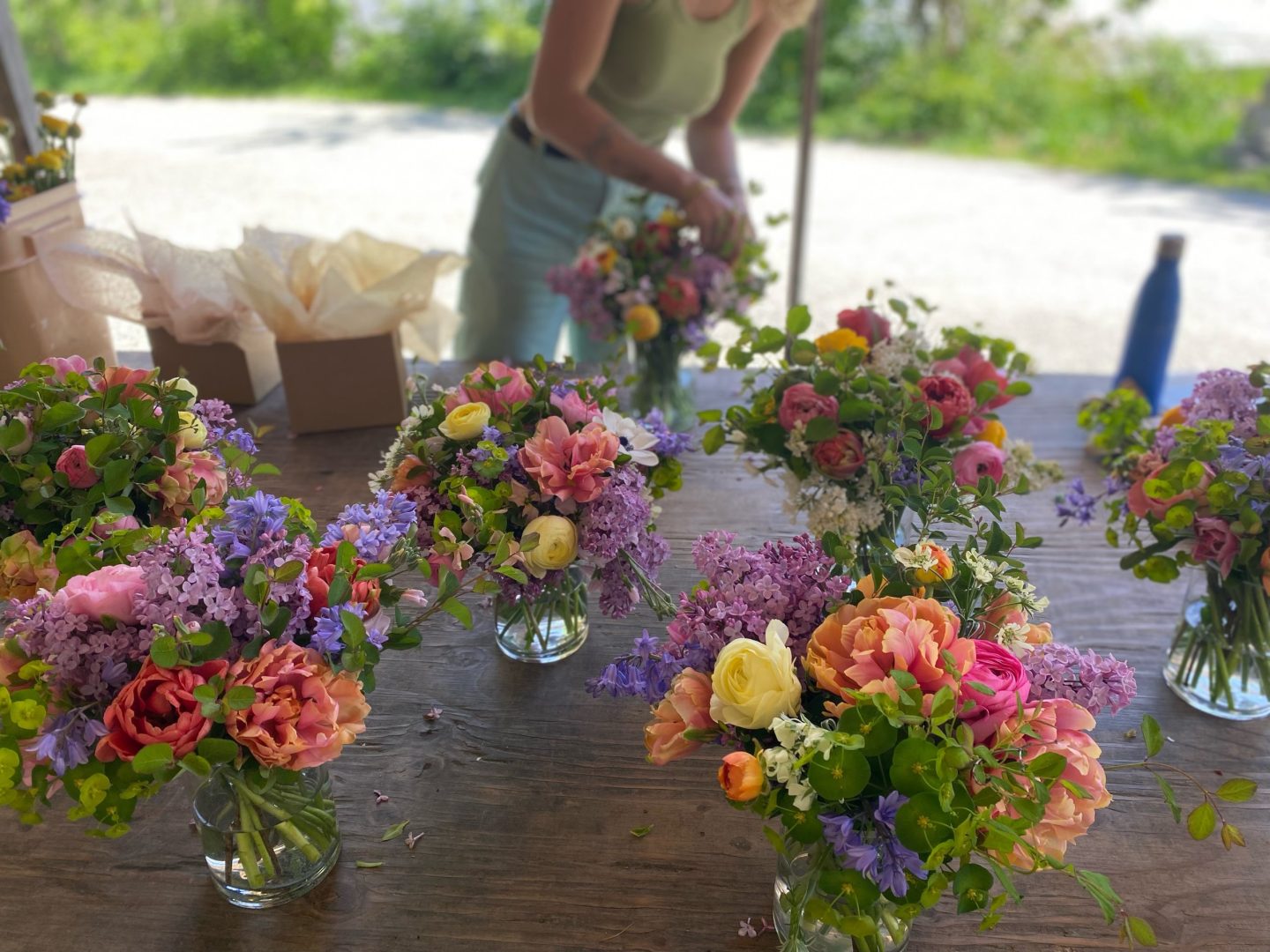There’s so much knowledge available these days and you can find me in my prop house starting seeds or out in the fields weeding and endlessly listening to flower farming podcasts, soaking up all the tips I can. But nothing has been as valuable as just getting to ask my mentor and other flower farmers questions. I’m so grateful to be part of a connected network of talented flower farmers who have been generous with their knowledge. My mentor through the Young Agrarians mentorship program is Kailli Pigot, of Dancing Dandelion Farms, and I was trained in farming and arranging for many years under Claire Jutras, of Earth Candy Farm, and Molly & Zack Wilson, of Bullock Lake Farm.
