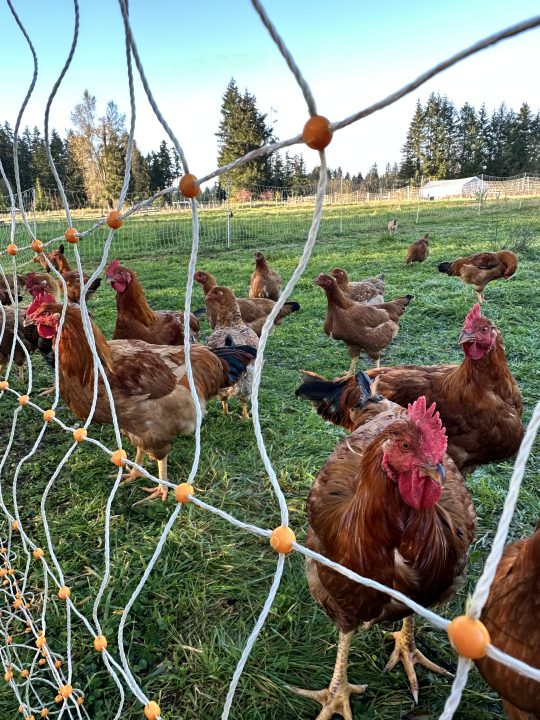 We are also transitional organic. Organic certification allows our peers to hold us accountable to high ecological standards. All the inputs we bring onto the farm, from our chicks to the livestock feed and cleaning products we use, have to be approved by our certifiers. These standards ensure we are not adding anything harmful to our farm while also helping us divest from a system that is adding synthetic fertilizers, pesticides, and other chemicals to our planet’s soil and water.