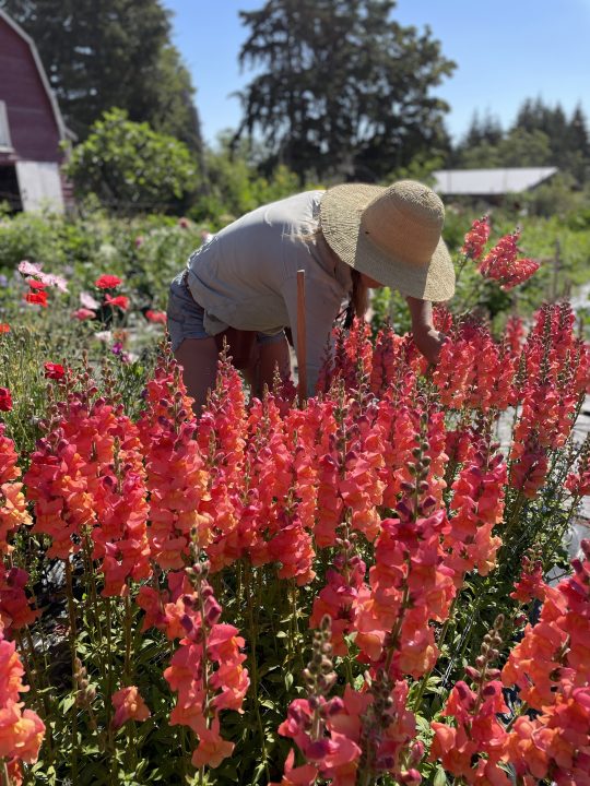 My best resource is always the community of farmers around me. Their shared knowledge and support are invaluable. Second to that, I’m grateful for the women who’ve gone above and beyond to support other flower farmers. Erin Benzakein of Floret provides a wealth of information on a wide variety of cut flower topics, available for free at www.floretflowers.com. Jessica of Sierra Flower Farm has a website full of crop plans and growing techniques at www.sierraflowerfarm.com. And Brianna Bosch of Blossom and Branch Farm shares lots of ideas for eliminating plastics and growing more ecologically at www.blossomandbranchfarm.com.