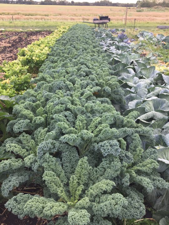 We have about 1/2 acre in mixed veggies – Carrots, onions, beets, garlic, peas beans, brassicas, and some flowers, and 2 acres of potatoes. I am planning to integrate some land into cover crops this season as we develop a fertility plan.